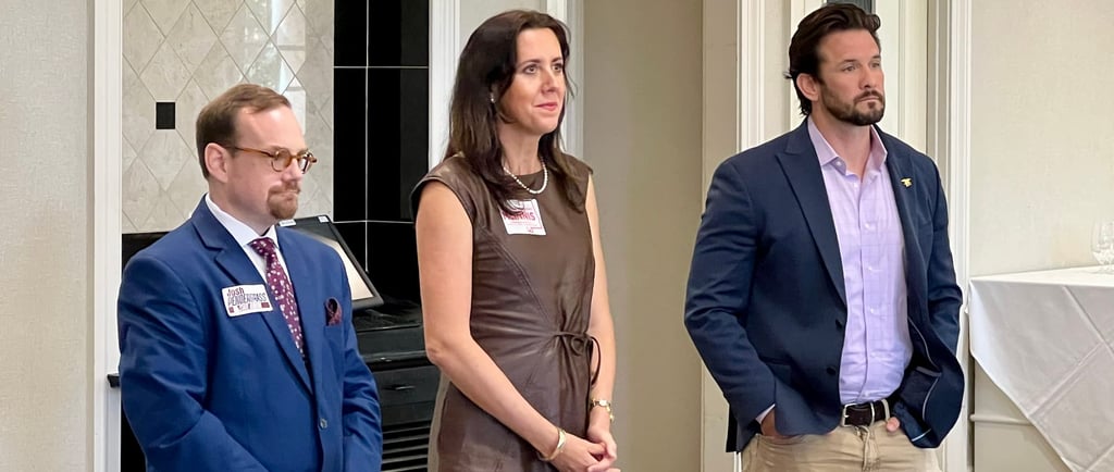 The Republican Women of North Shelby County hosted three candidates for office at their monthly meeting on Tuesday, September 9 at the Inverness Country Club in Hoover. The gathering drew over one hundred participants including club members, elected officials and other candidates. Candidate for Alabama Commissioner of Agriculture and Industries candidate Christina McInnis led the trio of guest speakers. McInnis, a fifth-generation farmer whose family had been farming in Alabama since 1906, began by saying that “in some ways this is like a job interview for me.” She pointed out that she would be the first woman to hold the position of Commissioner in Alabama’s history, and laid out her plans to use the office “to do what’s best for the Alabama farmer and the Alabama people.” McInnis shared her five-point plan, which involves working with other State and federal officials to remove junk food, especially energy drinks, from the SNAP program. She will also work with the Trump administration to limit the ability of China to steal America’s intellectual property and control Alabama farmland. McInnis spoke about the need to nurture young farmers, saying “we’re not putting the next generation into the field properly,” and that failing to train up the next generation of farmers “is the largest national security issue we face.” McInnis also discussed that she wants to leverage the Sweet Grown Alabama program to vastly increase Alabama’s status as an agritourism destination, primarily targeting out-of-staters traveling to the Gulf Coast beaches. Her intention is to entice these tourists to stop at Alabama’s many outlets, farmer’s markets and agricultural events and festivals and have them spend their tourist dollars across the State. Finally, McInnis said that she would establish a master volunteer and State grant portal at Ag & Industries because “farmers don’t have time to do that.” Her vision is for a master online portal where a farm or business could be registered once, then “our grant headhunter” at Ag & Industries would help find appropriate grants, to bring that money to Alabama. Next, State Auditor candidate Josh Pendergrass opened by saying that he is the first member of his family to go to college, and the first to get a degree. A pastor, a lawyer with a small private practice and a small businessman, Pendergrass was Governor Ivey’s Communications Director for several years. He addressed the question of why he’s running for Auditor by saying that “if we’re going to have good government, we need to have a good use of the people’s resources.” Pendergrass pointed out that “the Auditor doesn’t audit money,” but instead they are responsible for ensuring that $1.3 billion dollars of State property is accounted for. He also pointed out that the Auditor is fourth in line of succession to be Governor, and that it is a constitutional office. Pendergrass said that he intends to work with the Legislature “to come up with a way to hold State employees accountable when they misuse State property. He said that “I’m tired of seeing politicians promise the world and then deliver nothing.” A critical duty of the Auditor, Pendergrass said, is to appoint a member to the Board of Registrars in every county in the State, except Jefferson. “I will only appoint men and women who are dedicated to seeing that our elections are fair,” he said. Pendergrass closed by remarking that it’s all too common to see that “people running for a down-ballot office are running for the next office. That’s not me. That’s not why I’m running.” U.S. Senate candidate Jared Hudson was the final speaker. Hudson said that “the most important thing to know about me is that I’m a Christian. It’s the only thing about Jared Hudson that’s eternal.” The second thing to know about Hudson, he said, is to know about “my wife and kids. I’m an Alabama family man” who is raising his children here. The third thing, Hudson went on, is his history of service as a Navy SEAL sniper, and then one of the founders of Covenant Rescue Group—a group that has rescued over 2,000 women and children who were being trafficked. Covenant Rescue also trains LEOs in their rescue techniques both locally and nationally. Hudson then answered the question of why he’s running for Senate by saying that “it’s not political ambition. My life has been one of service. The issue that I have is that we see political ambition raising people to a political position for self-elevation.” Hudson went on to say that “I’m a warrior. I’ve shot people on behalf of this country. I’ve lost people in service to this country. This is how I think I can best serve this State, and this country.” Following their presentations, the candidates took questions from the group about a number of issues. All three candidates were well received by the group, and several stayed after the meeting was adjourned to meet and speak with the candidates personally.